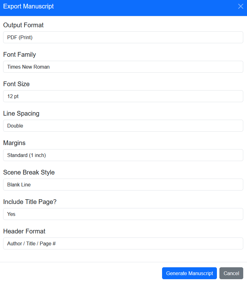 Export clean, professional manuscripts in seconds. Perfect for beta readers, agents, editors, and your own archive.